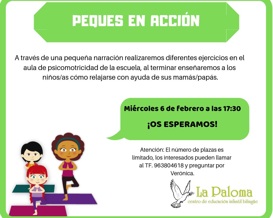 PEQUES EN ACCIÓN A través de una pequeña narración realizaremos diferentes ejercicios en el aula de psicomotricidad de la escuela, al terminar enseñaremos a los niños/as […]