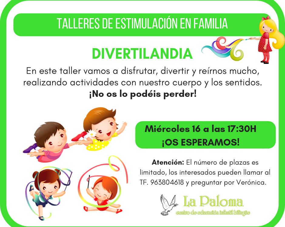 DIVERTILANDIA En este taller vamos a disfrutar, divertir y reírnos mucho, realizando actividades con nuestro cuerpo y los sentidos. ¡No os lo podéis perder! – Día: […]
