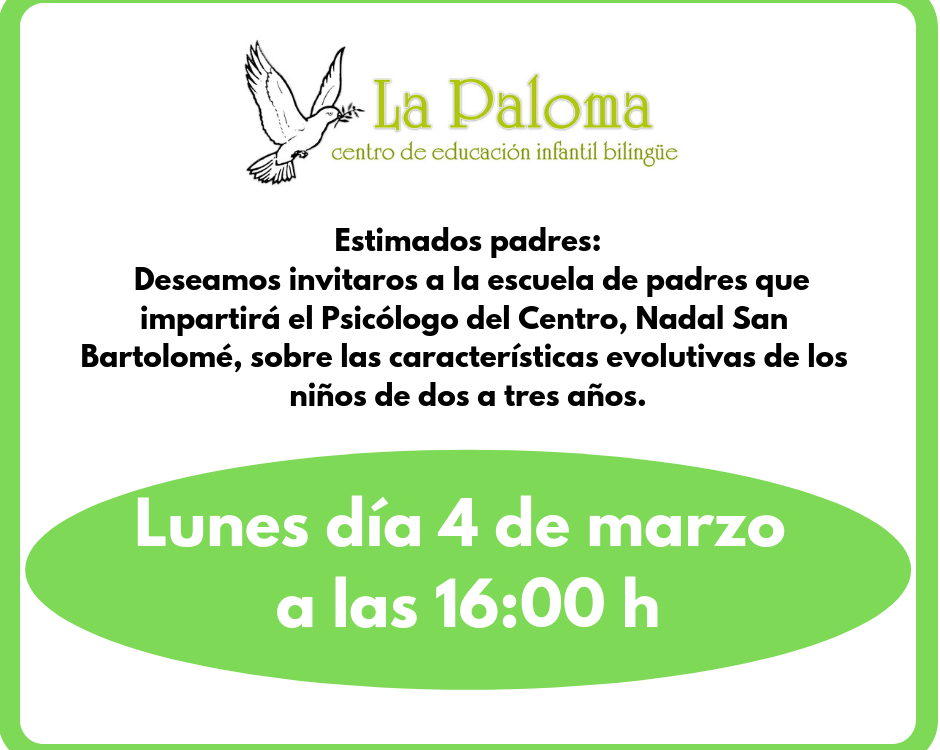 Estimados padres: Deseamos invitaros a la escuela de padres que impartirá el Psicólogo del Centro, Nadal San Bartolomé, sobre las características evolutivas de los niños de […]