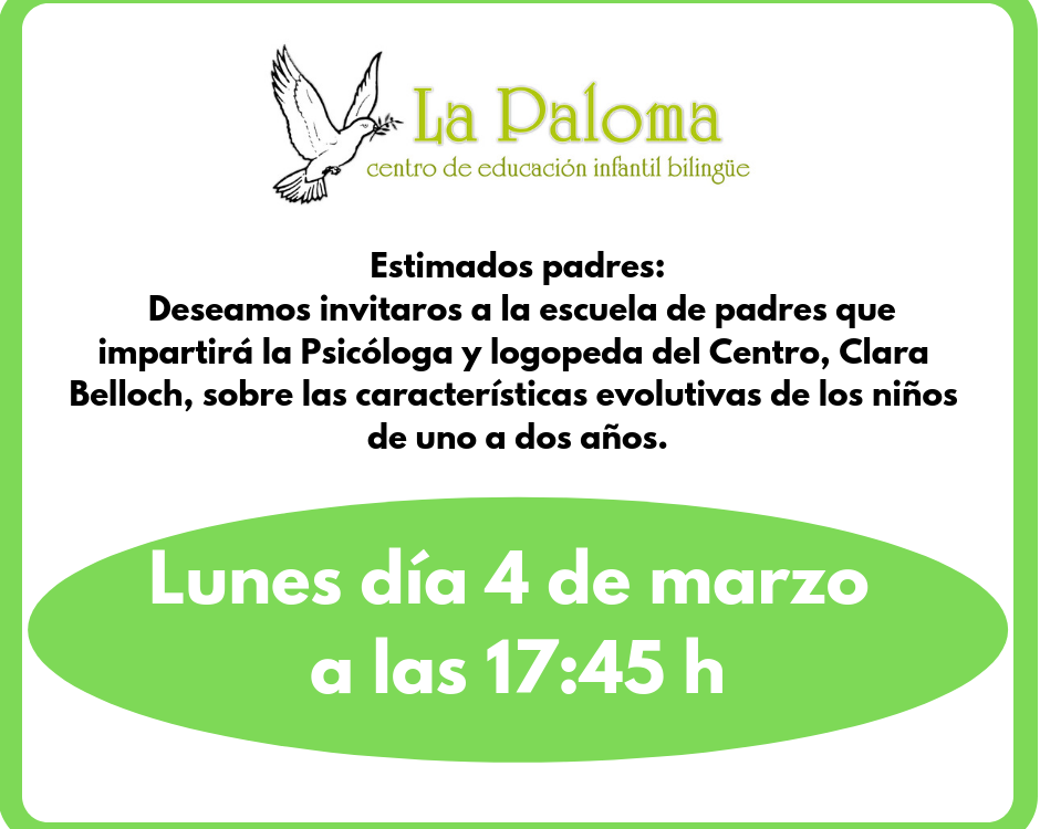 Estimados padres: Deseamos invitaros a la escuela de padres que impartirá la Psicóloga y logopeda del Centro, Clara Belloch, sobre las características evolutivas de los niños […]